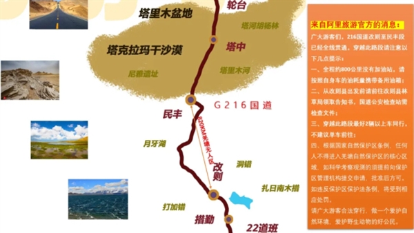 广大游客们,216国道改则至民丰段已经全线贯通。穿越此路段请注意以下几点提示: